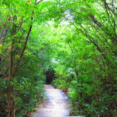 Je fais en revanche malgré l’apparition de la pluie la descente de 3 kilomètres à pied jusqu’au Temple de Daishoin. Le sentier offre par endroits de belles vues sur Miyajima.