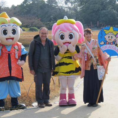 Je débute ma visite de la ville par le Musée Yumeji, présentant une collection d'un artiste japonais fort célèbre : Yumeji Takehisa. Les collections une nouvelle fois n’offrent aucunes informations en anglais et la visite est plus que rapide et décevante. J’espère me rattraper par une belle balade ensoleillée au Jardin Korakuen situé la rive est de la rivière Asahi. Il est considéré comme l'un des trois plus célèbres jardins du Japon (avec Kenrokuen à Kanazawa visité précédemment et Kairakuen à Mito).