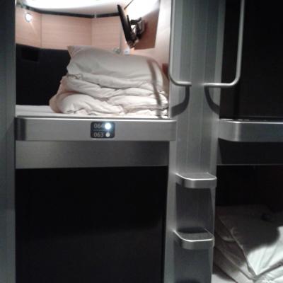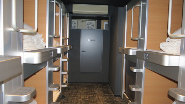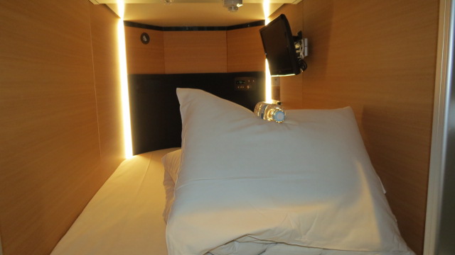 Après avoir testé le Ryokan au Mont Fuji, en tant qu’hôtelier il m’importait également de tester les hôtels capsules. De mémoire hormis dans quelques aéroports internationaux je ne suis pas certain que ce genre d’hôtel existe en dehors du Japon. De plus les tarifs des chambres fort élevés sur Osaka en ce week-end ne m’ont pas longuement fait hésiter à tester ce mode d’hébergement. Comment vous décrire une capsule ? Imaginez vous d’être à bord d’un Airbus A 380, en classe première… Ceux sont des cabines de dimension de 2 mètres sur 1 environ équipées d’un téléviseur, air conditionné, prise électrique et liseuse, avec un matelas et couette douillette, que l’on ferme par un rideau occultant coulissant, permettant de dormir en toute intimité. J’aime bien cette présentation, un peu plus glamour que si je vous dis que ceux sont 80 caissons collés les uns aux autres formant un immense dortoir, qui sent les pieds, avec des sanitaires et douches communes ! De ce fait les capsules sont soit réservées aux femmes ou aux hommes. Etant je vous le rappelle un routard, mais de luxe, mon capsule hôtel est également équipé d’un spa, avec piscine, sauna, hammam, de salles de relaxation et d’un salon de massage. Et croyez moi après une journée de 12 km a gambadé dans la fraicheur hivernale, la pause jacuzzi est fort bienvenue !