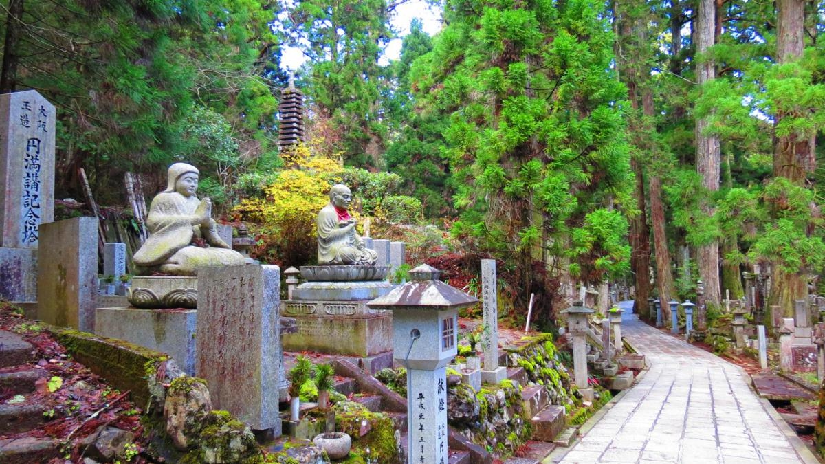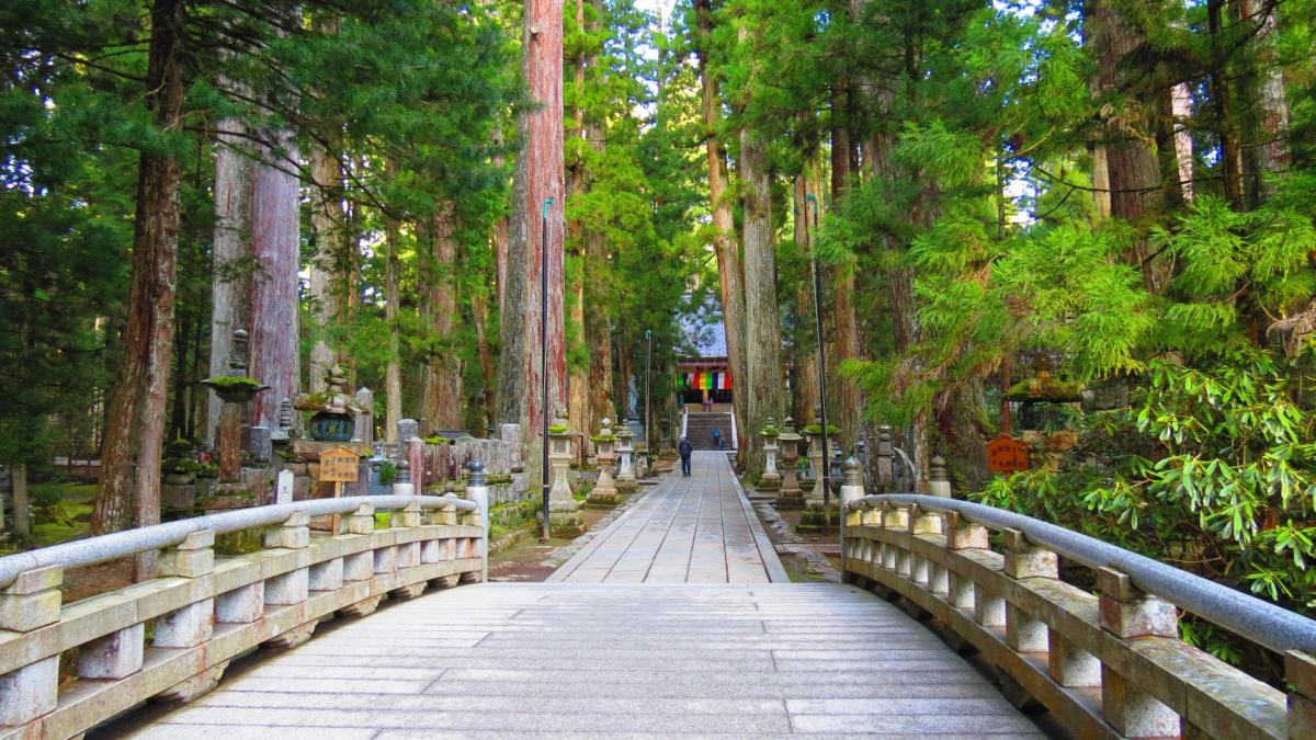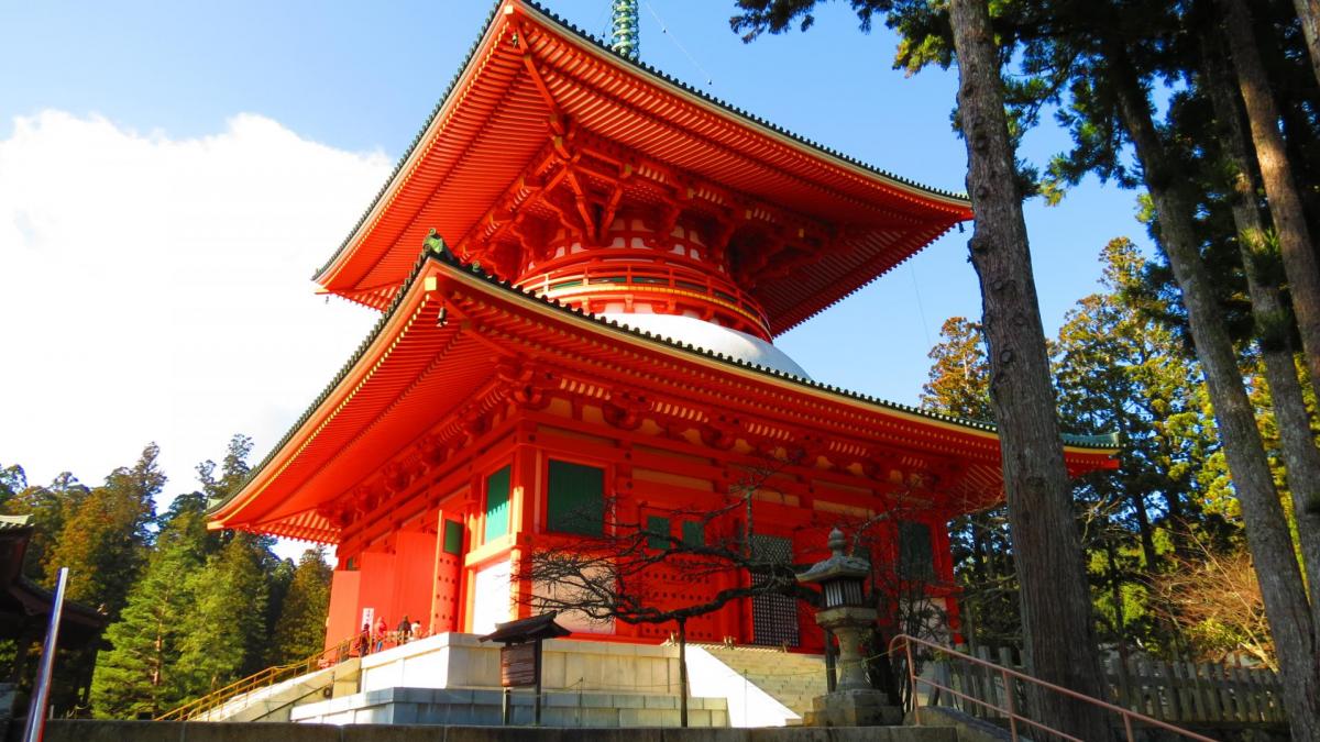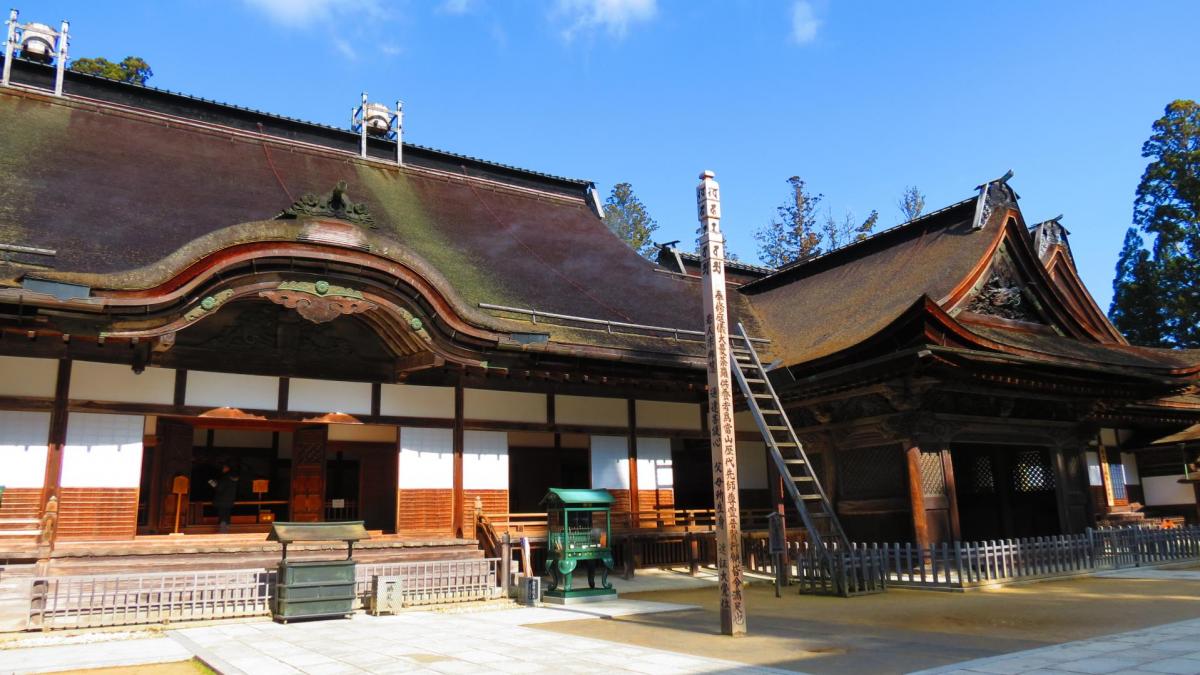 C’est à Koyan San située à 900 mètres d'altitude, au sommet du mont Koya, que se trouve le temple Kongobu-ji, fondé en 816 par le moine Kukai (également connu sous le nom de Kobo-Daishi). Il est devenu le temple principal du bouddhisme Shingon, branche ésotérique du bouddhisme japonais. Depuis, 120 temples et monastères ont été installés sur la montagne, en faisant un centre religieux de premier plan. Certains d'entre eux, les Shukubo, proposent un hébergement aux pèlerins et aux visiteurs, ou des repas végétariens, avec la possibilité de s'initier à la pratique de zazen, la méditation zen. Le site est classé au patrimoine mondial de l'Unesco depuis 2004.