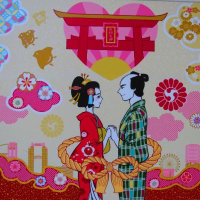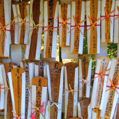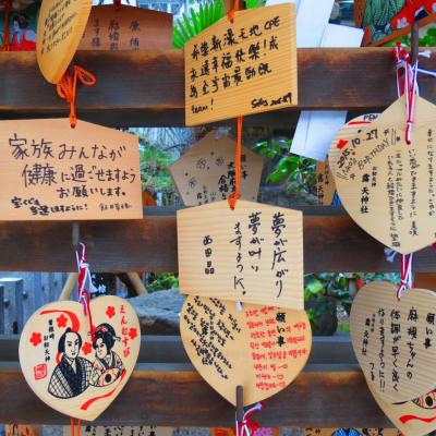 Héritier des grossistes textiles, Umeda accueille aujourd'hui une impressionnante concentration de bureaux, banques ou hôtels. Son centre commercial souterrain, le plus grand du Japon, forme en lui-même une véritable ville, et j’ai le plus grand mal a trouver mon chemin pour trouver d’une part la sortie vers l’extérieur, puis la direction pour visiter le petit sanctuaire d’Ohatsu Tenjin. Arrivé enfin à la surface, je le trouve finalement perdu ou coincé en plein milieu des grattes ciels. Ce petit sanctuaire vieux de 1300 ans est réputé dans tout le Japon pour être un temple dédié aux amoureux. En témoigne les petites plaques de vœux inscrites par les visiteurs. Bon je me demande finalement ce dont je suis venu faire dans cette endroit !