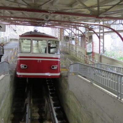 Après une assez mauvaise nuit de sommeil, perturbée par les ronflements de mon voisin de capsule, l’isolation phonique n’étant pas le point fort de ce genre d’hébergement…. Tiens cela faisait un petit moment que je ne vous avait pas parlé de mon obsession, la météo. Et bien il fait beau ! Donc c’est le plan A qui est retenu pour cette journée avec au programme une escapade pour Koyasan. 2 heures de train à bord d’un petit tortillard pour rejoindre la gare de Gokurakubashi (pas facile à dire…essayez vous verrez) située à 535 mètres d’altitude. De là un funiculaire permet de gravir sur 800 mètres un joli dénivelé pour atteindre la station de Koyasan à 867 mètres.