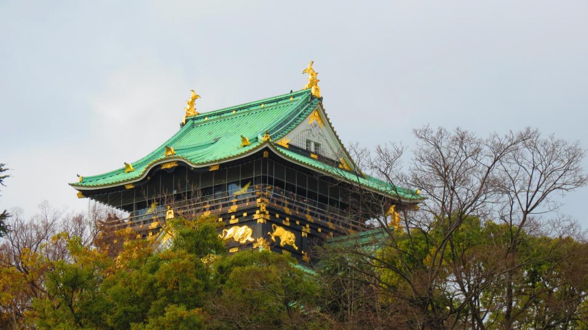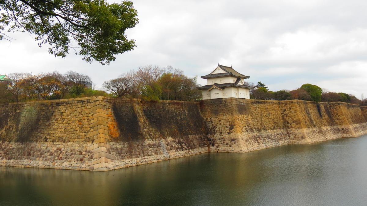 Si vous n’avez qu’un lieu à visiter, un seul, ce doit être absolument le château d’Osaka, qui fut jadis le plus important du Japon et qui a été construit en 1586 par Toyotomi Hideyoshi. La forteresse actuelle, qui s’élève sur cinq étages, est une copie du bâtiment original et elle contient un grand nombre de documents et d’objets d’art dont l’histoire est directement liée à la famille Toyotomi et à l’Osaka du passé. Le château d'Osaka a été construit à la fin du 16e siècle par Toyotomi Hideyoshi, le seigneur de la guerre qui a tenu le pays sous son joug. Incendié et reconstruit à de nombreuses reprises, il s'élève au centre d'un grand parc de 6 hectares où les habitants de la ville aiment particulièrement se promener au printemps, à la saison des cerisiers en fleurs. La tour offre également une belle vue sur la ville. Le yagura (tourette) et les murs de pierres gigantesques datent de l'époque Tokugawa. Et comme on est en plein hiver, le parc et le château sont vraiment bien tristounets. Il y a pourtant foule, il y a plus d’une heure d’attente pour accéder au donjon, le château fermant ses portes ce lundi pour 4 jours.