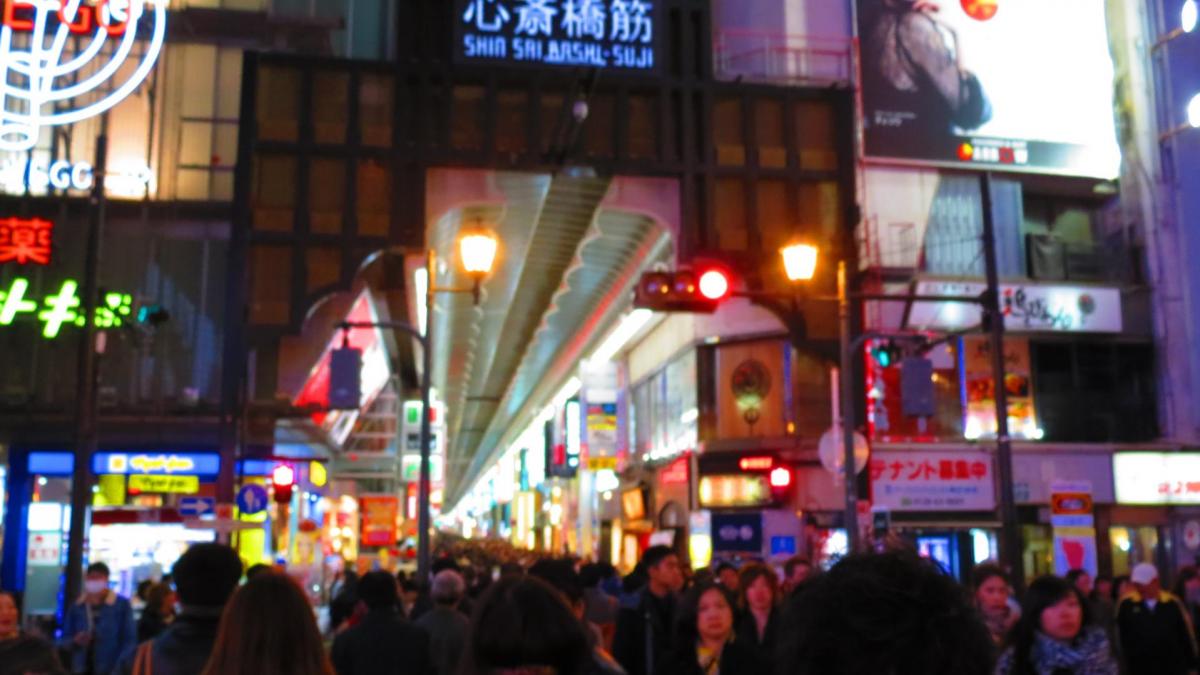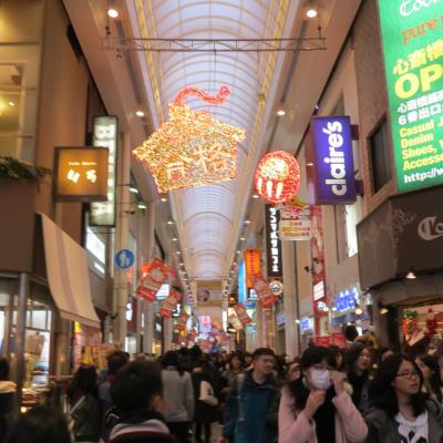 Une grosse heure et demie de trajet, et me voici arrivé en gare de Namba. Changement radical avec l’atmosphère tranquille et l’air pur du Mont Koya. Retour dans la frénésie capitaliste avec les immenses centres commerciaux attenant à la gare. Ils sont bondés en cette fin de samedi après midi, les japonais semblent être des férus du shopping et de grands gourmands : les pâtisseries françaises, crêperies ou autres salons de thé sont pleins à craquer, nombreux faisant la queue à l’extérieur le temps qu’une table se libère… le japonais est également patient. Je ne manque pas d’aller voir les illuminations du centre commercial Park attenant à la gare, puis de traverser avec difficulté l’arcade commerciale de Shinsaibashi-Suji sur le chemin de Dotonbori noire de monde…. Je suis réellement impressionné de cette foule dans les rues, les restaurants et magasins, une vraie ruche ou fourmilière !