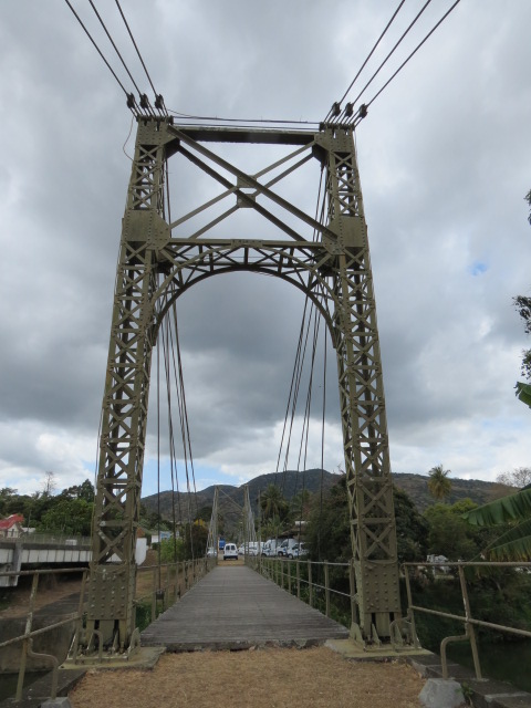 Je quitte la belle route nationale pour mon premier arrêt, les plages de Ouano et les sentiers de mangrove. Le site offre un enchainement de de plages et de mangroves. Je traverse la grosse bourgade de La Foa et sa Passerelle Marguerite. Un ouvrage conçu par des disciples d’Eiffel, assemblé en France puis démonté et expédié en pièces détachées. Cette passerelle a été inaugurée en 1909, et porte le prénom de la femme du gouverneur Richard l’ayant inauguré.
