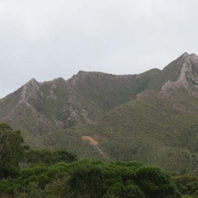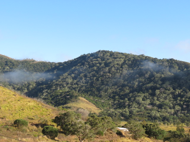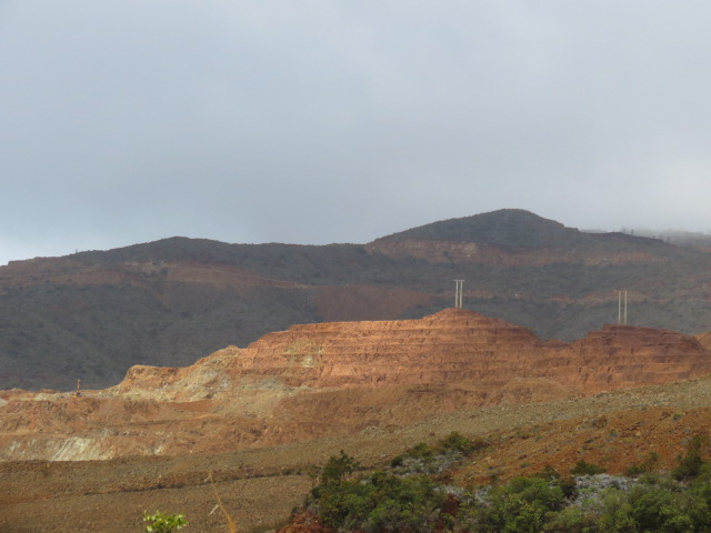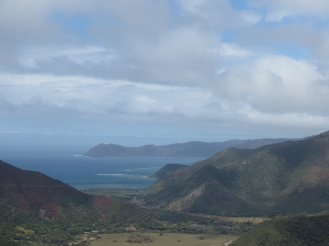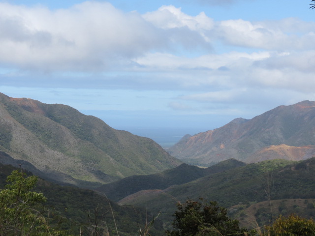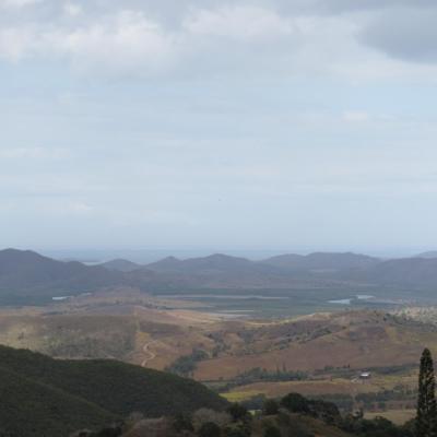 Arrivé au sommet à 345 mètres, le point du vue offre également un beau panorama sur le petit village de Poindimié et la côte Est. Je ne mets que 2 heures à faire l’aller retour pour 3 heures d’indiqué… démontrant finalement malgré mon embonpoint une bonne forme physique ! Je regagne le gite pour une bonne douche et je reprends à nouveau la route en direction du sud, espérant m’arrêter au niveau de Canala ou au pire au village de Thio dernier village accessible par la route sur la côte est. La route est moins belle, moins scénique que la veille traversant les estuaires de la Tchamba et de la Nérihouren. Je m’arrête au village de Houailou pour prendre une photo sur la montagne et les mines de nickel à ciel ouvert. J’ai la très désagréable surprise de me faire « caillasser » par un petit kanak. Par chance le caillou me passe à une quinzaine de centimètres du visage, mais va ricocher sur la fenêtre arrière de la voiture. Le verre n’éclate pas, et ne sera marqué que par un bel éclat. Double chance ! Je suis fou de rage et crie après le gamin partant se cacher derrière sa maison. Alertée par mes cris et tous les noms d’oiseaux que je lance à son fils, sa mère daigne sortir de la maison… D’une grande nonchalance, elle a peut être fumer un pétard maison… elle ne prend pas l’affaire au sérieux, cela a le don de m’exaspérer sachant qu’il y ait des chances que le loueur me facture des frais supplémentaires…et qu’elle ne se rend pas compte que j’aurai pu être blessé au visage par ce jet de pierre… Je l’informe que je vais aller porter plainte à la gendarmerie, cela n’a pas l’air de l’ennuyer plus que cela… Contrarié je prends la maison et les lieux en photos… et reprend ma route… Je me trouve à présent dans un nomade land, la route franchissant différents cols et mines à ciel ouvert, défigurant au passage totalement le paysage… J’arrive au village de Canala, je ne souhaite pas perdre de temps inutile à la gendarmerie… préférant trouver un hébergement… pas de gite dans les parages…