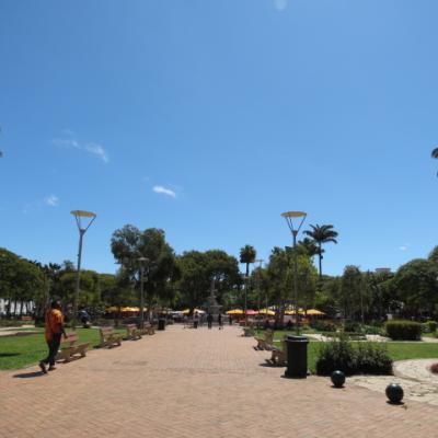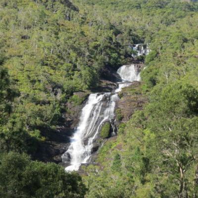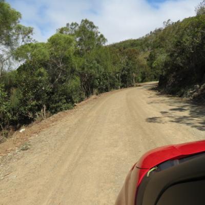 Je quitte la côte pour Farino, qui a comme particularité d’être la plus petite commune de l’ile, de ne comporter aucune tribu et dont le nom viendrait du village natal de nombreux immigrants corses originaires de Farinole… Un très beau point de vue de la mairie perchée à 350 mètres d’altitude permet de voir la côte ouest et l’embouchure de Téremba. Le Parc des Grandes Fougères offrant de nombreux chemins de randonnées est malheureusement fermé, en raison de gros risques d’incendie. L’ile a subi ces dernières semaines une grosse période de sécheresse et de nombreux feux de brousse ont du être maitrisés par les pompiers. Je vais donc me contenter d’une petite balade de 6 kilomètres d’une heure le long du sentier de la petite cascade, traversant une forêt humide, savane à niaoulis.