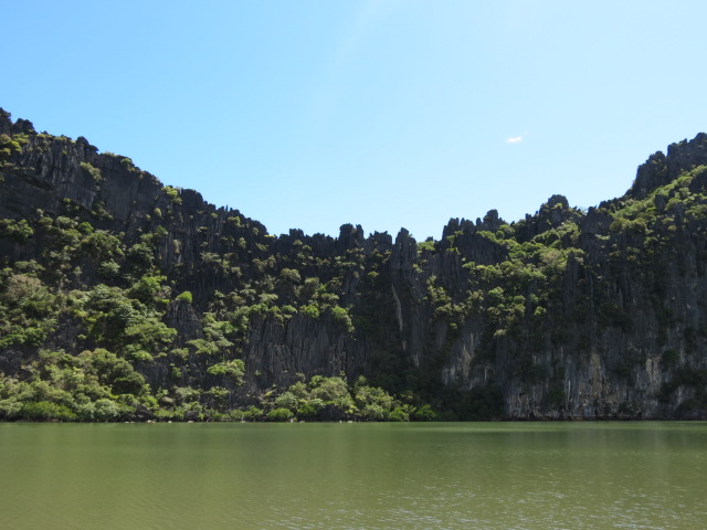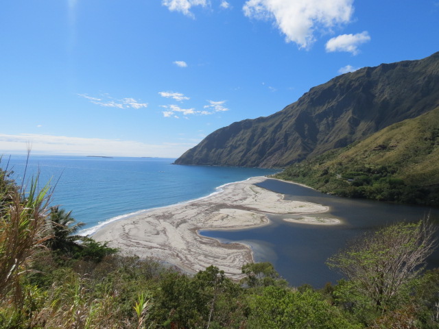 Je continue à présent ma descente vers Poindimié qui j’espère sera mon étape pour la nuit. Juste à la sorte de Hienghène se trouvent les magnifiques falaises et la lagune de Lindéralique , formation rocheuse de calcaire noir, la route est vraiment belle, de nombreux fleuves côtiers sur jettent dans l’océan créant de jolis estuaires. Poindimié n’a qu’un hôtel et il est hors de prix pour mon budget, 160 Euros la chambre… par chance à la sortie du village, un panneau indique la présence d’un gite. Je tente ma chance… le prix d’une case est également hors de prix, environ 120 Euros pour la nuit, mais le gite propose un dortoir dont le prix varie en fonction du nombre d’occupant. Nous serons 3 à l’occuper, du coup le prix sera de 30 Euros… cela est dans mon budget, mais finalement cher par rapport à la prestation …