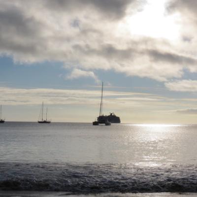 Dernier arrêt à la baie de Kuto, à profiter de cette belle journée et de ce magnifique coucher de soleil, avec au loin notre paquebot rempli d’australiens prenant le large, bon débarras… l’ile sera plus calme demain