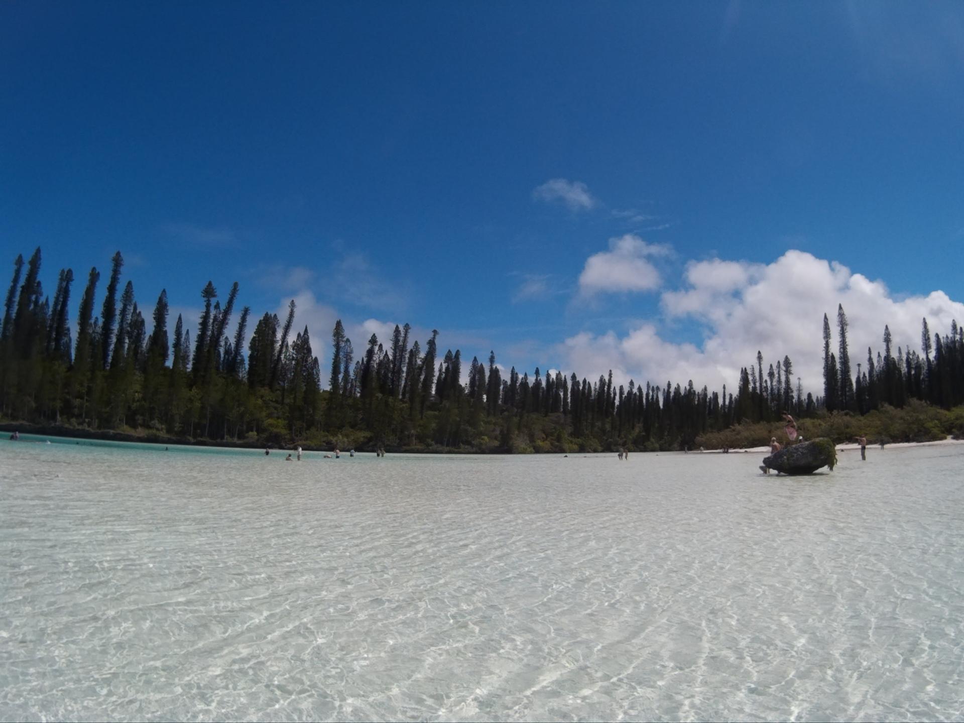 Direction la superbe et paradisiaque baie de Kanuméra et sa presqu’ile rocheuse. La température de l’eau est trop fraiche à mon goût, je n’irai pas plus loin qu’au niveau des genoux ! Belle après midi à farnienter sur la plage à l’ombre d’un bugny et de conclure sur ce magnifique panorama ma petite escale sur l’ile des Pins.