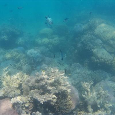 Les coraux sont multicolores et magnifiques. La clarté de l’eau n’est cependant pas optimale pour la prise de photos sous marines et admirer la richesse sous marine. Des petits panneaux informatifs sous marins sont également présents permettant d’identifier pour les nuls en plongée comme moi, une des cent cinquante espèce présente.