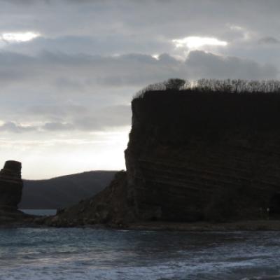 Bourrail côté mer est également célèbre pour sa formation rocheuse, la roche percée et son bonhomme attenant à la falaise de la roche, la lumière en cette fin de journée n’est malheureusement pas propice à la mise en valeur de ce site en image…