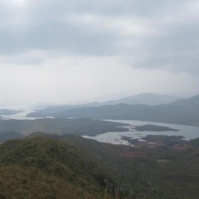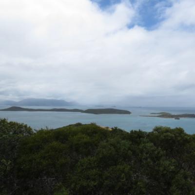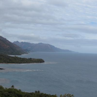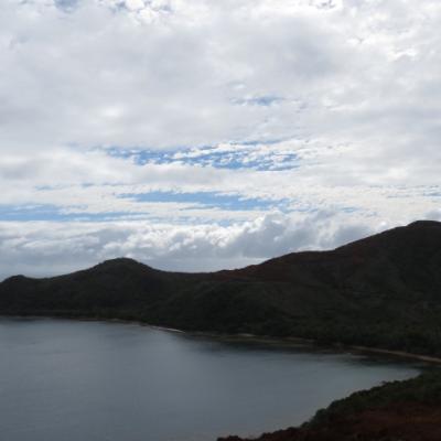 Une bonne heure de marche est nécessaire pour atteindre le sommet, l’ascension étant comme souvent avec ces forts dénivelés assez physique accentuée par la moiteur ambiante. Arrivé au point de vue, même constat, c’est superbe malgré ces fichues brumes et nuages ne permettant pas le cliché carte postale ! Les baies et les ilots baignés dans une eau turquoise cristaline, dominés par les araucarias et banians centenaires.