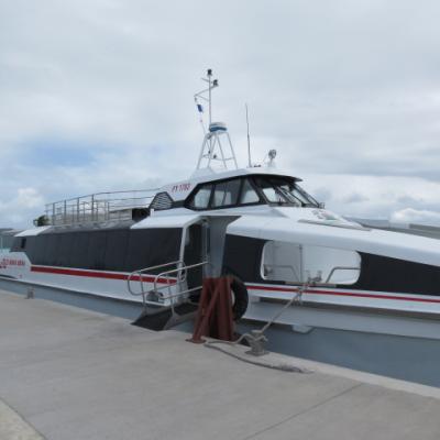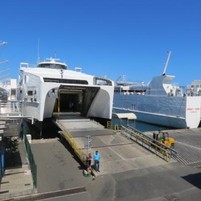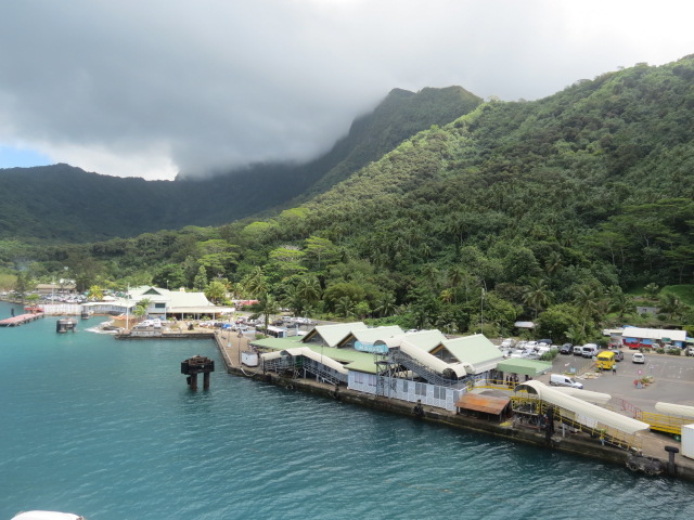 Après avoir récupéré enfin ma nouvelle carte bancaire arrivée sous pli recommandé au bureau de poste de Paea qui pour la petite histoire a mis 3 semaines pour faire les 17000 km qui nous séparent… (j’avais eu la bonne idée de l’oublier dans un distributeur à Santiago). Je regagne Papeete et la gare maritime en bus pour embarquer à bord d’un ferry à destination de Moorea. On peu considérer que Mooréa est la petite sœur de Tahiti la Grande, séparée seulement de 15 km.