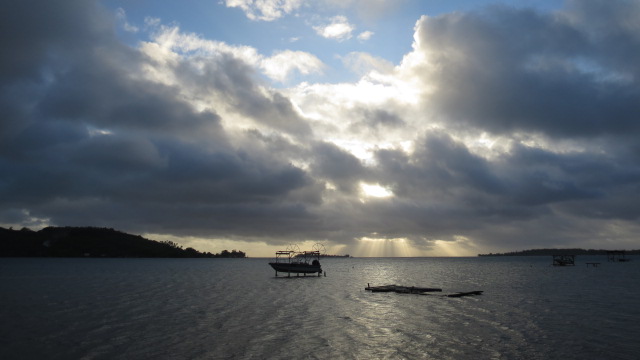 Réveil matinal comme pratiquement tous les jours depuis mon arrivée en Polynésie. Il est vrai que le soleil se lève vers 5h30 et qu’il se couche vers 18h00… les magasins ouvrent la plus part leur portes à 6h30… Donc si vous voulez profitez de vos journées, il n’y a pas le choix !