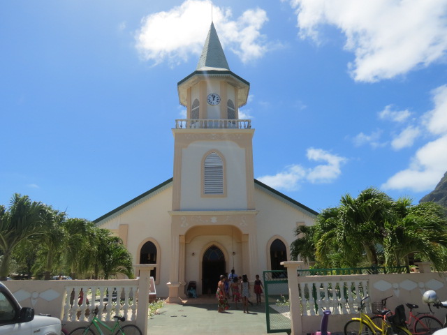 Je termine ma petite balade dominicale en m’arrêtant à l’église protestante de Faanui. C’est l’heure de la messe et je m’attarde une grosse demi-heure à écouter les superbes chants gospels en tahitien.