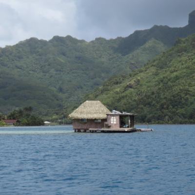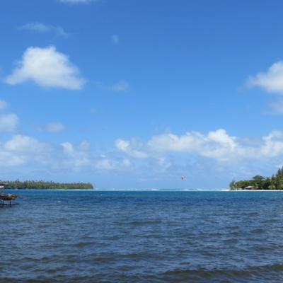 Nous atterrissons donc sur le petit aérodrome de Bora Bora situé sur un motu (ilot) autour du lagon. Pour le petit côté exotique après avoir débarqué de l’avion nous prenons donc place dans un catamaran qui va nous amener au quai du village principal de l’ile Vaitape. Marc André mon logeur pour les 3 prochaines nuits m’attends pour me conduire à la maison d’hôte.