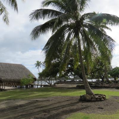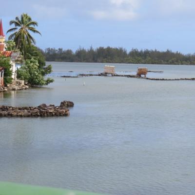 Le programme du jour est de faire le tour des deux iles, dont le trajet est estimé à une cinquantaine de kilomètres. Après avoir hésité à louer un scooter, je me décide finalement à le faire en vélo… Les prévisions météos sont optimistes, après une matinée couverte, le beau temps devrait progressivement revenir…. Et l’ile d’après Juanito est relativement plate… Donc c’est parti ! En selle. Je débute mon circuit par le nord de Huahine Nui par la visite du joli marae de Maeva, (au cas où il y a un long descriptif sur les marae de Polynésie sur l’article de Tahiti), suivi des pièges à poissons de Fenaaa Nui.