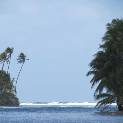 Je rejoins la côte nord de l’ile qui n’est pas bordée par le lagon pour retrouver le marae de Manunu suivi de la passe tiare ou se trouve le jardin de corail face à la plage de l’ancien hôtel Sofitel totalement démonté il y a 7 ans, la piscine étant un des rares vestiges. La baie est superbe, d’autant que le soleil fait son apparition et les eaux du lagon se colorent en bleu turquoise.