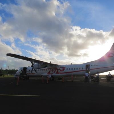 Je quitte en début d’après midi Paea remerciant Caro et Bruno de leur hospitalité et des nombreux conseils avisés qui m’ont permis de passer une agréable semaine sur l’ile. Je dépose la voiture au loueur et direction les comptoirs d’enregistrement de l’aéroport International de Faa’a. Direction l’île de Huahine… pour un vol de 40 minutes.