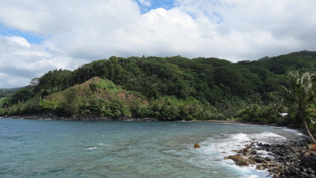 Remontons à présent l’Ile en direction de Papeete sur le versant est. La côte moins peuplée est plus sauvage et le trafic automobile y est moins dense. Un arrêt s’impose à Ti’arei, afin de faire la petite randonnée des trois cascades de Fa’aurumai’a. Le site étant fermé pour travaux de sécurisation je reprends donc la voiture pour un petit kilomètre et observer le phénomène naturel du Trou du Souffleur. Il s’agit d’un tunnel souterrain creusé dans la roche. La houle et l’air s’y engouffrent côté océan et en ressortent au pied de la montagne en bord de route, produisant des grondements sourds et de puissants geysers d’eau (si forte houle). La mer étant relativement calme on se contentera des grondements ! Et c’est mieux ainsi côté sécurité. Un dernier arrêt à 10 km de Papeete sur la commune de Mahina pour contempler la côte est des pointes Tapahi et de la Pointe Venus où débarquèrent découvreurs, explorateurs et missionnaires dans cette baie. Le nom de Venus provient de l’installation d’un observatoire astronomique par James Cook en 1769 pour observer le passage de Venus devant le soleil et ainsi calculer la distance qui sépare la terre du soleil…