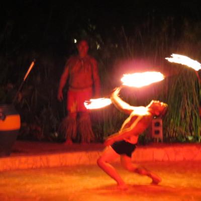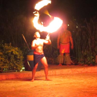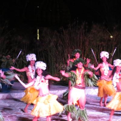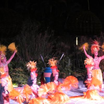 L’après midi est consacré au farniente, pas grand-chose dans tous les cas à faire d’autre, il pleut… Je passe la soirée à l’hôtel Méridien...pour y admirer un concours de danse de couteau de feu; c’est une tradition polynésienne, le vainqueur du concours représentant la Polynésie Française aux championnats du monde à Hawaï suivi d’un spectacle de danses folkloriques tahitiennes avec de belles Vahinés...