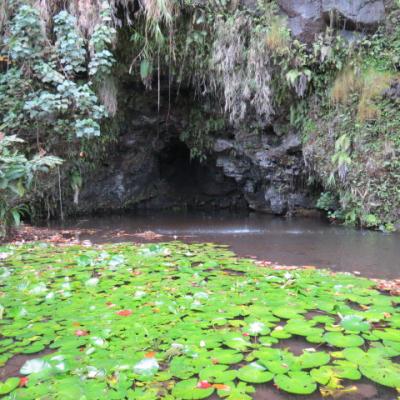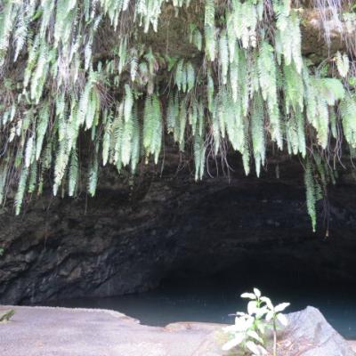 Ciel couvert, les alizées soufflent fortement, bref météo pas terrible… Direction le sud et les jardins d’eau de Vaopahi où j’avais effectué un arrêt hier matin. J’ai prévu cette fois-ci de faire la randonnée de 6 km sur les hauteurs, ballade sympathique….au milieu d’une forêt de pins. Sur le retour de Pa’ea un arrêt à l’unique mais superbe golf de l’Ile de 27 trous, suivi d’une mini ballade le long des falaises de Mara’a et de ses 3 grottes. Au milieu d’une végétation luxuriante , une belle promenade mène d’une grotte à l’autre dont la grotte de Vaipoiri de grande dimension abrite un lac. L’après midi est consacré à farnienter allongé sur la plage et à finir de récupérer du décalage horaire.