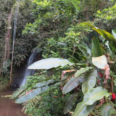 Le repas tahitien est un délice. Nous reprenons la route malheureusement les conditions météos sont mauvaises et ne nous permettent pas de rejoindre le lac Vaihiria dernière étape de l’excursion. Nous regagnons donc Papeete et sur le chemin du retour, Teiva nous arrête sur ses terres agricoles situées dans la vallée du Tepannoo, terre de ses ancêtres, pour nous montrer les différentes variétés de fruits cultivités sur la plantation : une quinzaine de variétés de bananiers, deux variétés d’ananas dont le célèbre Victoria, des manguiers, avocats, orangers… racines de gingembre, et hibiscus en ornement. La nature sur l’ile est généreuse…. Nous rentrons tranquillement sur Papeete, Teiva nous déposant respectivement.
