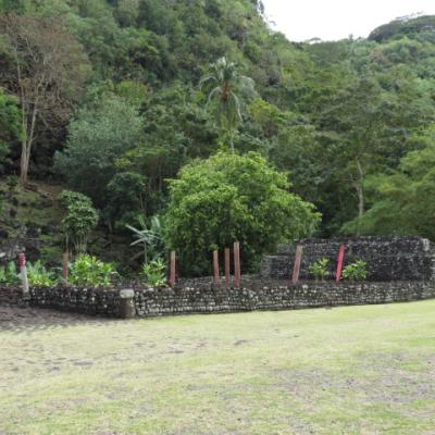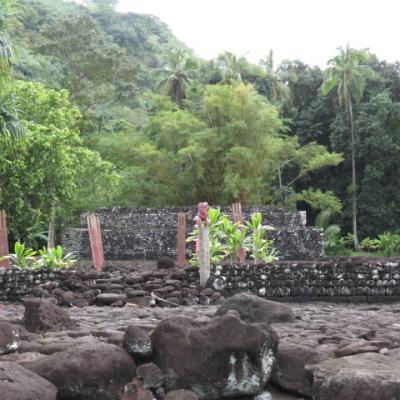 Un petit cours d’histoire sur les marae s’impose afin de comprendre l’importance de ces sites et plus particulièrement celui-ci : les marae des Iles de la Société étaient des espaces réservés aux activités cérémonielles, sociales et religieuses des anciens Polynésiens. Ils formaient des monuments de dimensions différentes qui suscitèrent l’intérêt des observateurs européens de la fin du XVIIIème siècle. Le marae était un espace de méditation, de rituels et de communication des prêtres avec les dieux dont il importait de se ménager les faveurs. Les cérémonies religieuses qui s’y déroulaient donnaient lieu à des prières, des chants, des invocations aux ancêtres ou aux divinités, et à des sacrifices. Le marae était également le reflet d’une organisation des sociétés polynésiennes anciennes, très hiérarchisées et dont les communautés ou hui étaient néanmoins étroitement dépendantes les unes des autres. Le rôle social du marae aurait existé antérieurement à leur attribution sacrée. Les marae étaient de ce fait des enjeux de pouvoir politique et religieux entre les chefferies. Les marae présentaient des différences architecturales et ornementales notables. Ces distinctions semblent autant liées à une différenciation culturelle et cultuelle des îles les unes par rapport aux autres qu’à un jeu d’alliances politiques des chefferies. Le marae était un complexe architectural qui évoluait avec la communauté qu’il représentait. Un agrandissement ou une extension pouvait indiquer une avancée de prestige du propriétaire. Lors d’une prise de possession de terre, de nouveaux marae pouvaient être édifiés à côté ou à l’emplacement d’un ancien marae. Si la conception et la construction d’un marae variait d’une ile à une autre, l’architecture de base comprenait généralement une pierre angulaire, une aire quadrangulaire, la cour du marae pourvue d’un autel à l’une des extrémités et d’un ensemble de pierres dressées et de pierres dossiers. Les maraes étaient des constructions en pierres sèches. Aucun mortier n’était utilisé dans l’agencement des pierres et la grande majorité ont été construits entre le XVème et XVIIIème siècle. (source Ministère du Tourisme de Polynésie Française).