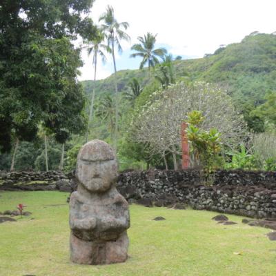 C’est le week-end ! Petit programme aujourd’hui. Je ne vais pas sortir la voiture de la journée. En effet la visite du jour se situe 200 mètres du studio ! Il s’agit du Marae Arahurahu. C’est un ancien site sacré, religieux et guerrier restauré en partie. C’est le plus beau et le plus important sur l’Ile de Tahiti. Le lieu est magnifiquement aménagé dans un beau parc luxuriant. Le site est très photogénique du fait de l’addition de deux copies de Tiki de Ra’ivavave (iles Australes). Les originaux se trouvent au musée Gauguin à Papeari).