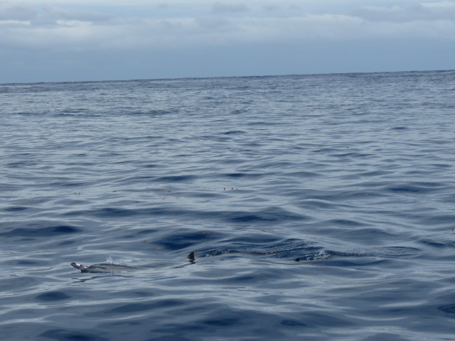 Je ne plongerai pas pour la troisième tentative, préférant rester à bord, dommage car ceux sont 7 baleines accompagnées de globicéphales que mes partenaires d’un jour vont pouvoir observer. Tout n’est cependant pas perdu, car le spectacle vu du bateau est également exceptionnel. Cependant Eric ordonne à toute la troupe de remonter rapidement à bord, un requin océanique est repéré…. Les 7 baleines restent cependant proche du bateau certainement curieuses de notre présence. Nous regagnons à présent tranquillement le bord du lagon à la recherche de dauphins.