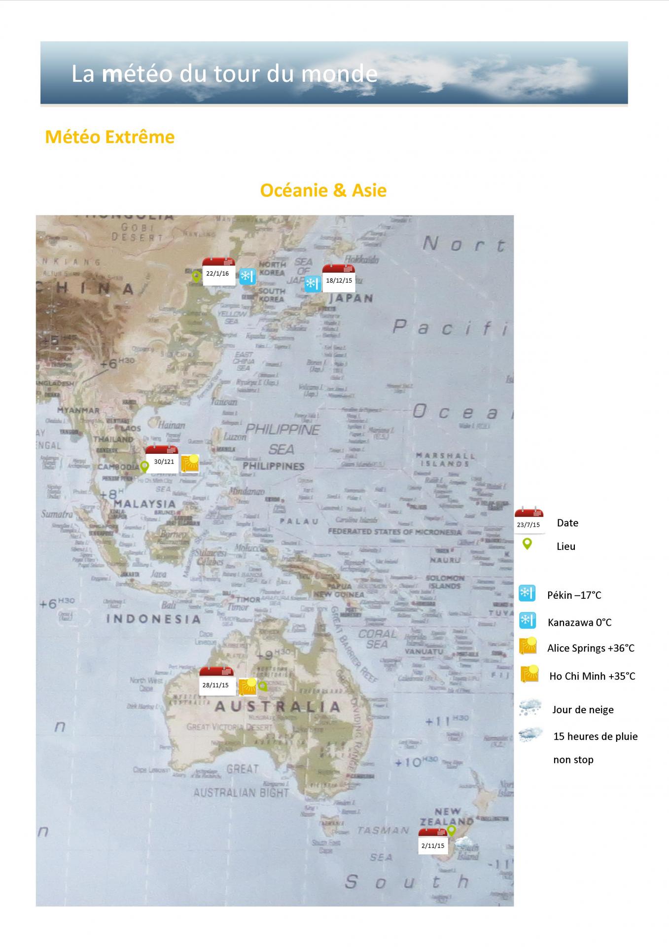 Hormis quelques caprices du ciel, et de ce fameux El Nino : Neige à la Paz, grisaille et crachin à Rio de Janeiro, pluie sur Fox et Franz Ferdinand Glaciers en Nouvelle Zélande, averses sur les Blues Montains en Australie et froid Sibérien sur la Chine continentale, je dois avouer, que les dieux du ciel m’ont particulièrement gâté et épargné. Les conditions météos ont été un magnifique allié durant ces 233 jours de voyage permettant de profiter de magnifiques journées et d’apprécier la beauté des paysages de notre magnifique planète.