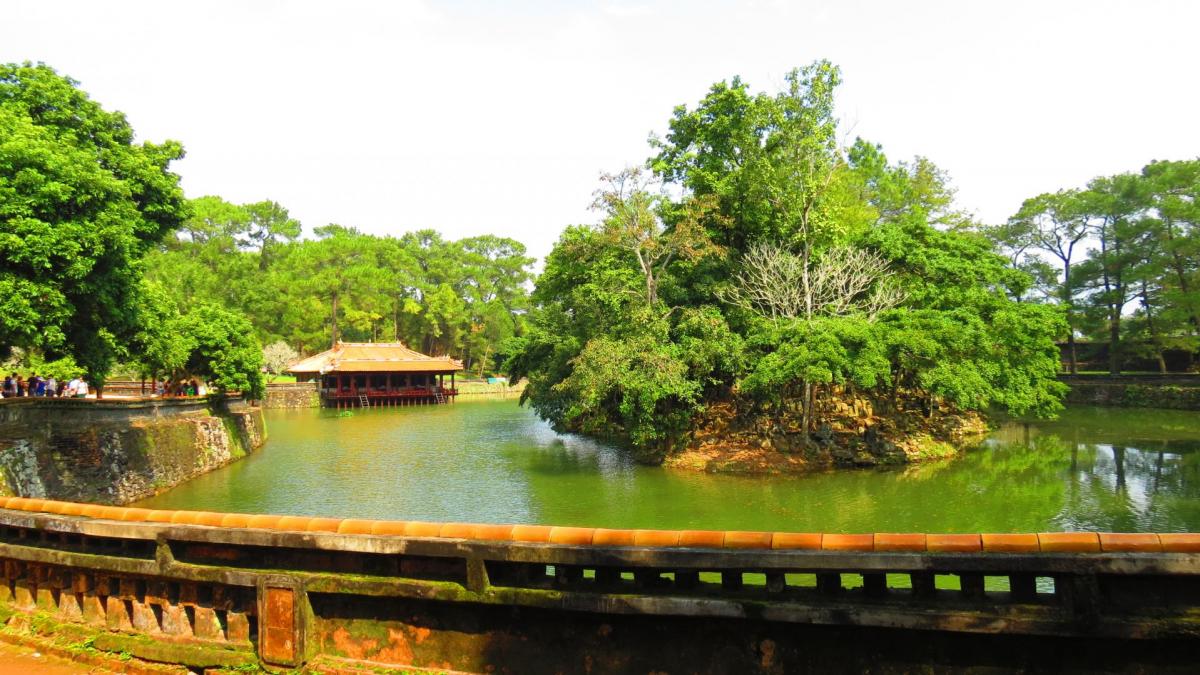 Après une visite express du village des baguettes d’encens et des chapeaux coniques et d'un spectaculaire spectacle de Kung-Fu vietnamien, il me reste à découvrir  le tombeau de l’Empereur Tu Duc qui se trouve au milieu des frangipaniers et des pins. Ce n’est pas un simple tombeau, on évoque davantage l’idée de la vie éternelle que celle de la mort. Deuxième fils du roi Thieu Tri, Tu Duc était un passionné de poésie et conçut ce mausolée comme un véritable parc d'agrément pour sa vie éternelle. Entouré d'une enceinte de plus de 1 500 m, il s'inscrit dans un cadre particulièrement agréable et comporte une cinquantaine d'édifices répartis sur quelque 12 ha. Tu Duc régna trente-cinq ans, de 1848 à 1883. Il supervisa lui-même les travaux et séjourna régulièrement dans ce lieu qui lui permettait de s'éloigner un peu de la cour. Sa construction s'étala de 1864 à 1867, et mobilisa 6 000 soldats et ouvriers.