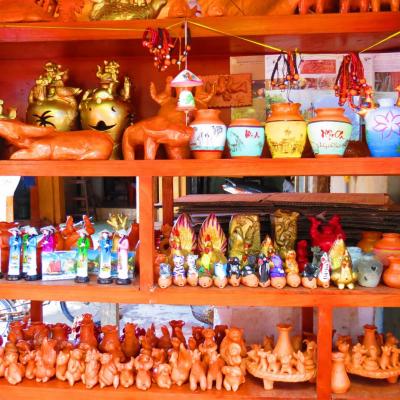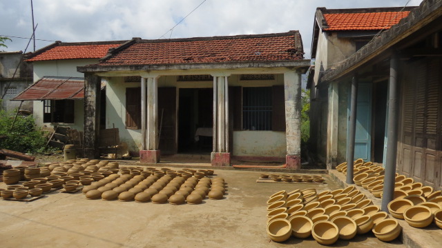 Cette ville, certainement la plus belle du pays, possède un charme certain et une réelle authenticité. Je continue ma ballade en longeant la rives du Thu Bon afin de regagner le petit village de potiers de Thanh Ha situé 3 kilomètres plus à l’ouest. Le village regorge d’ateliers de potiers, fabriquant tuiles, briques et artisanats dédiés aux touristes.