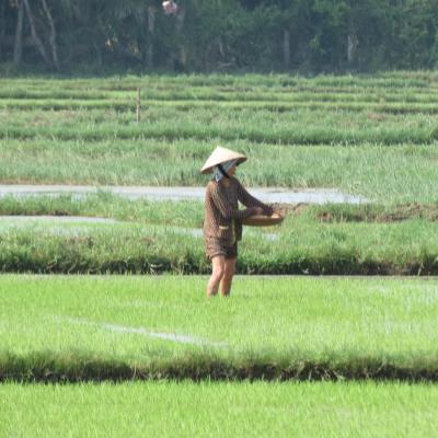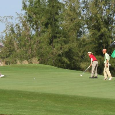 Sur le chemin du retour, un petit arrêt pour découvrir le golf de Danang, cité comme plus beau golf du Vietnam et dessiné par un célèbre joueur de golf Greg Norman. En ce dimanche nombreux joueurs fortunés expatriés ou riches asiatiques en vacances tapent la balle, assistés par des caddys portant sacs, réparant divots et ratissant bunkers…. On croirait presque assister à un tournoi digne du PGA ! Le prix du green fee (parcours pour les non initiés) est d’environ 90 Euros, 2,5 millions de Dong, soit une réelle fortune pour un vietnamien. Véritable contraste avec les agriculteurs qui travaillent dans les rizières un peu plus loin….…. je ne suis pas certain qu'il gagne cette somme d'argent en un mois de labeur...