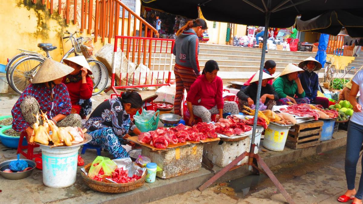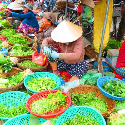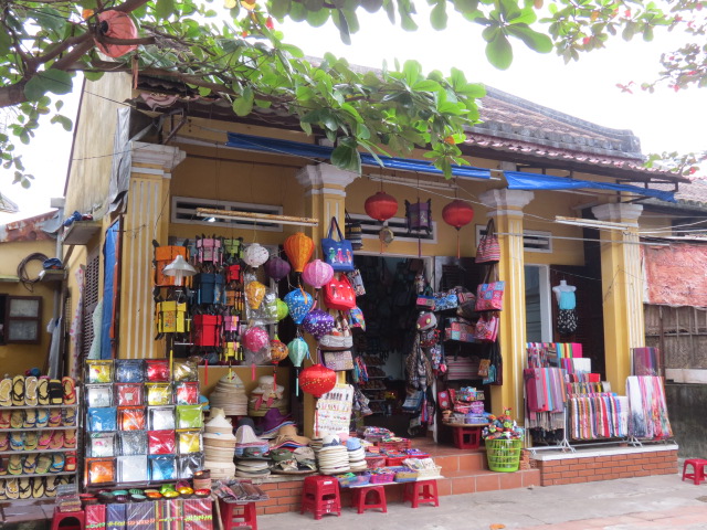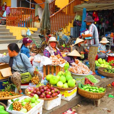 Je pars donc à la découverte d’Hoi An en vélo. Le vélo étant le meilleur moyen de visiter ce petit port marchand, les ruelles du centre ville étant accessibles uniquement aux piétons et aux cyclistes. Un vrai régal ! Pas de pollution sonore et de pots d’échappements. Je débute par le marché qui déborde d'animation, de couleurs et de senteurs pour nous occidentaux terriblement exotiques. Le marché situé en bordure de rivière était au XVème et au XVIème siècle, un lieu de commerce et d’échange où accostaient les bateaux et jonques venus du monde entier : Chine, Hollande, Japon, Portugal.