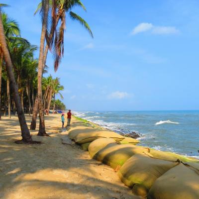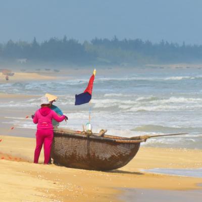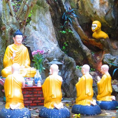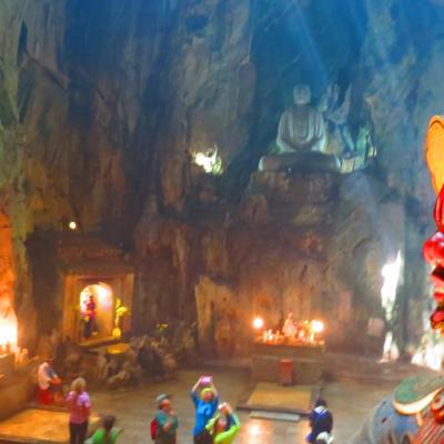 Direction donc le nord à destination de Danang, plus précisément vers La montagne de Marbre située à environ 10 km au sud-est de Ðà Nẵng et à 20 km d’Hoi An. Je vais longer la route côtière et en profiter pour repérer les plages afin d’y faire un saut à mon retour. Hoi An a deux plages, la première, la plage de du Cua Dai a disparu sous l’effet de la marée et de la mer qui est assez forte en cette période de l’année. La deuxième celle d’An Bang, après avoir dépassé les complexes hôteliers ressemble malheureusement à un vrai dépotoir, la mer rendant finalement une grand partie de ce que l’homme a pu jeter. C’est finalement aux abords de Danang que les plages sont les plus belles et les mieux entretenues. C’est décidé, c’est sur la plage de Non Nuoc que je me poserai après la visite de la montagne de marbre.