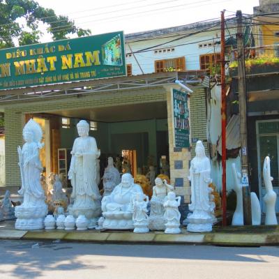 Aux abords des collines, la route est bordée de nombreuses échoppes remplies de statuettes de marbre plus ou moins imposantes. Les vietnamiens extraient de ces collines depuis des lustres un très beau marbre qui fut utilisé en partie pour construire le mausolée de Hồ Chí Minh à Hanoi.