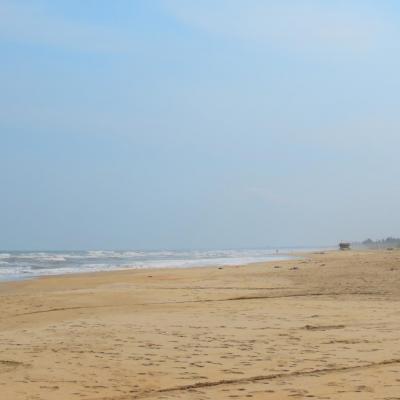 Comme convenu après ce petit effort, un peu de réconfort pour une petite bronzette sur la plage. L’accès à la plage est récent, certainement que dans un an ou plus, elle sera bordée de nouveaux hôtels ou villas. Aujourd’hui je suis seul, pas un loueur de transat ou vendeur de souvenir pour m’enquiquiner ! Ou me faire payer le stationnement du scooter. La mer est forte en cette saison, voire dangereuse en à lire les panneaux d’avertissement et l’eau trop fraiche à mon goût pour m’y baigner.